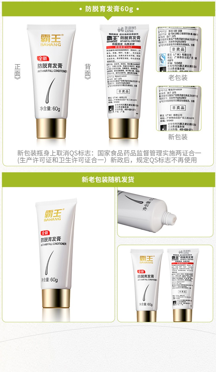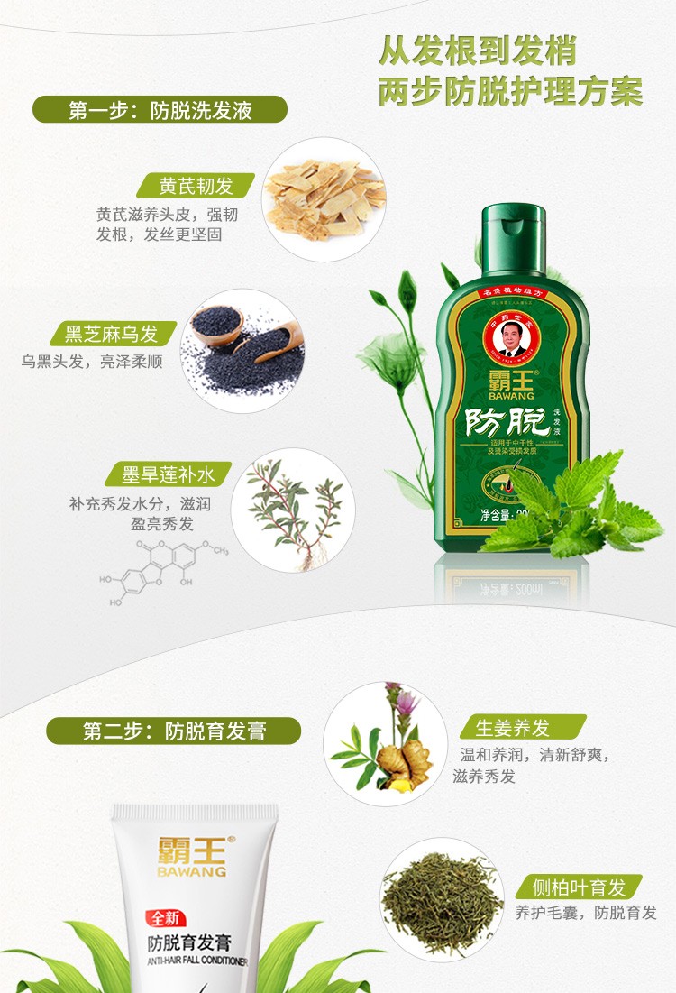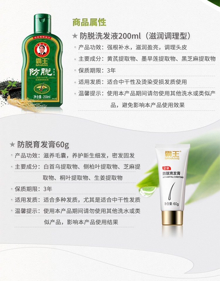 霸王 调理型 防脱洗发液200ml+防脱育发膏60g 浅杉绿