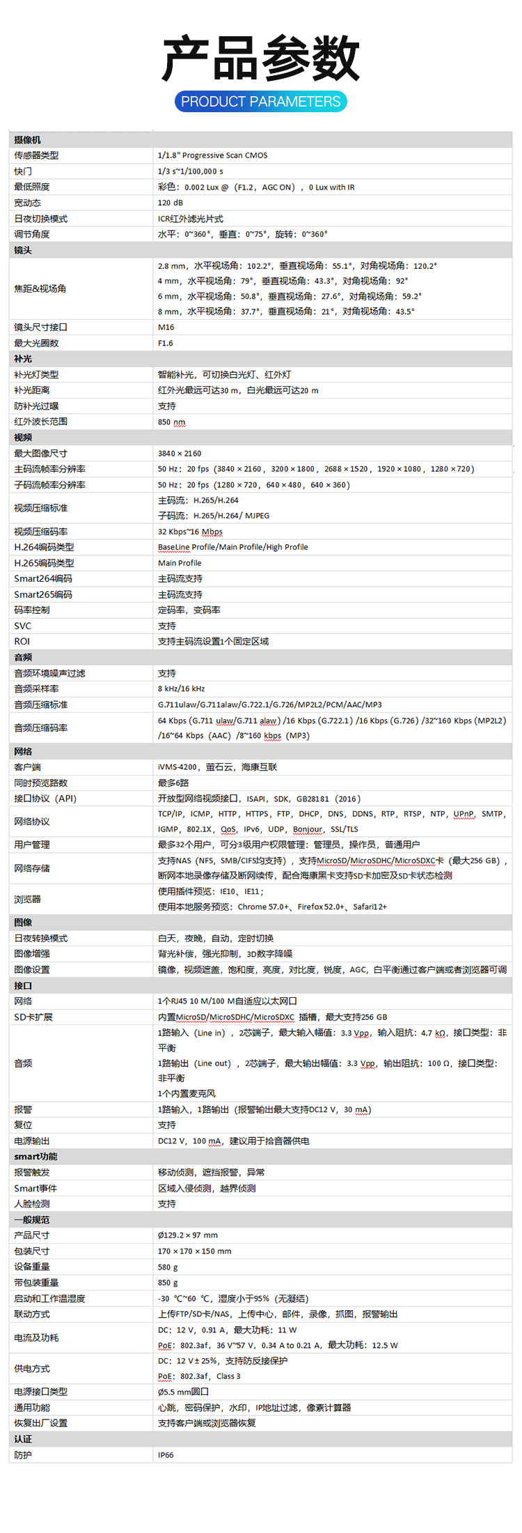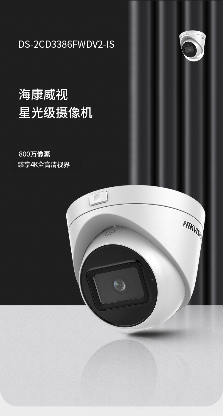 海康威视HIKVISION摄像头监控800万4K超高清星光夜视室内室外POE供电手机远程摄像机可插卡3386FWDV2-IS2.8mm 白色