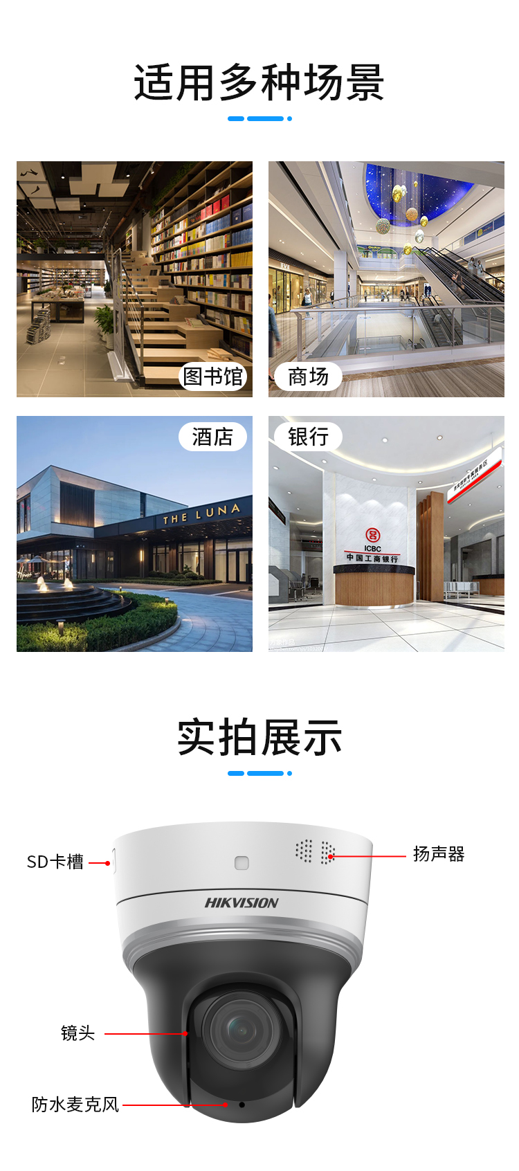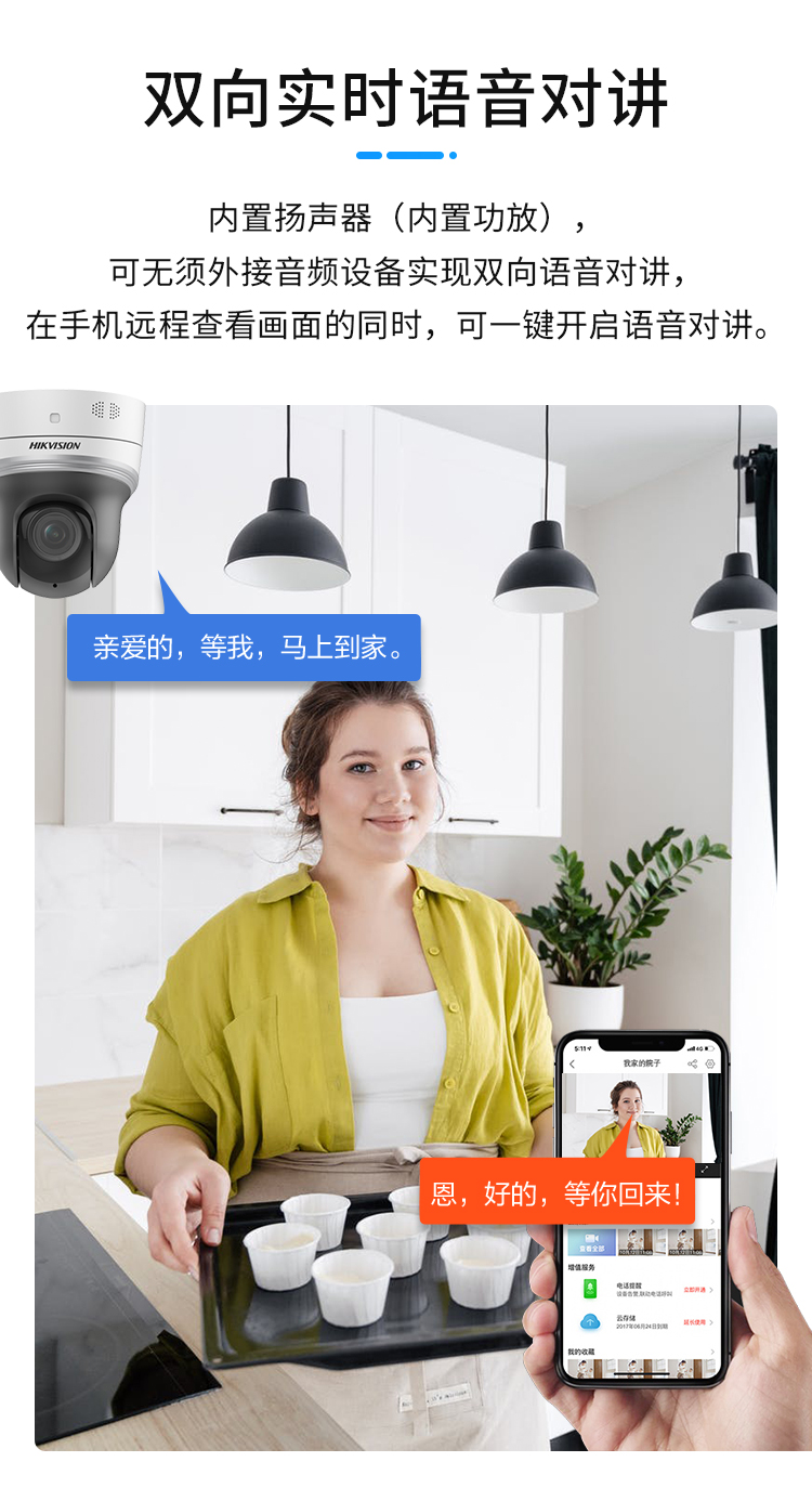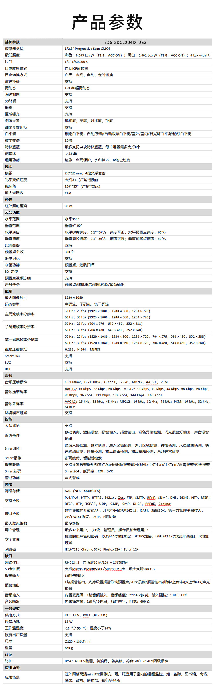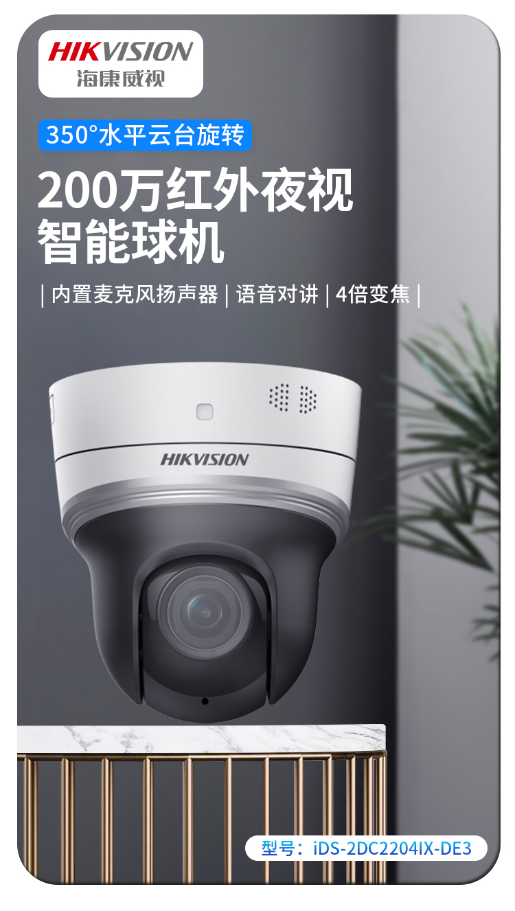 海康威视HIKVISION监控摄像头200万红外夜视室内球机语音对讲人脸抓拍网线供电iDS-2DC2204IX-DE3 白色