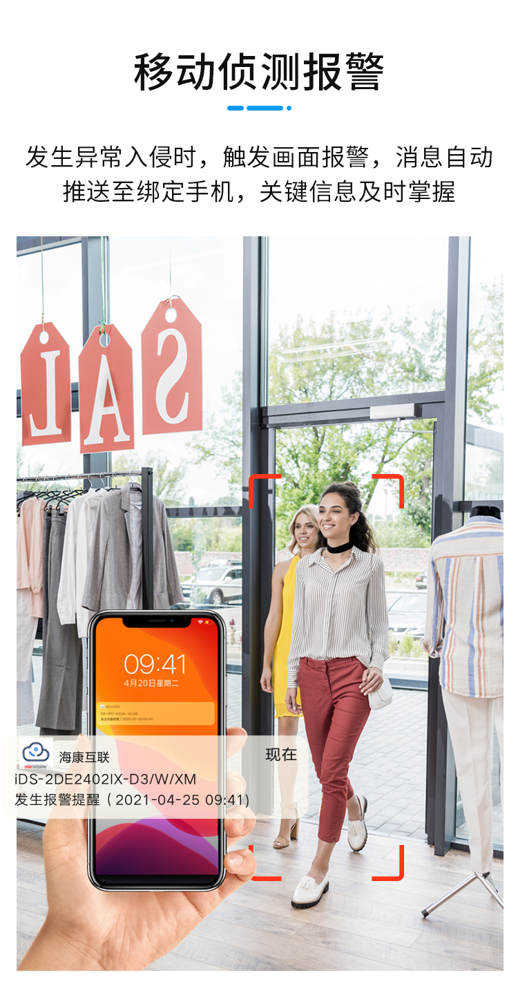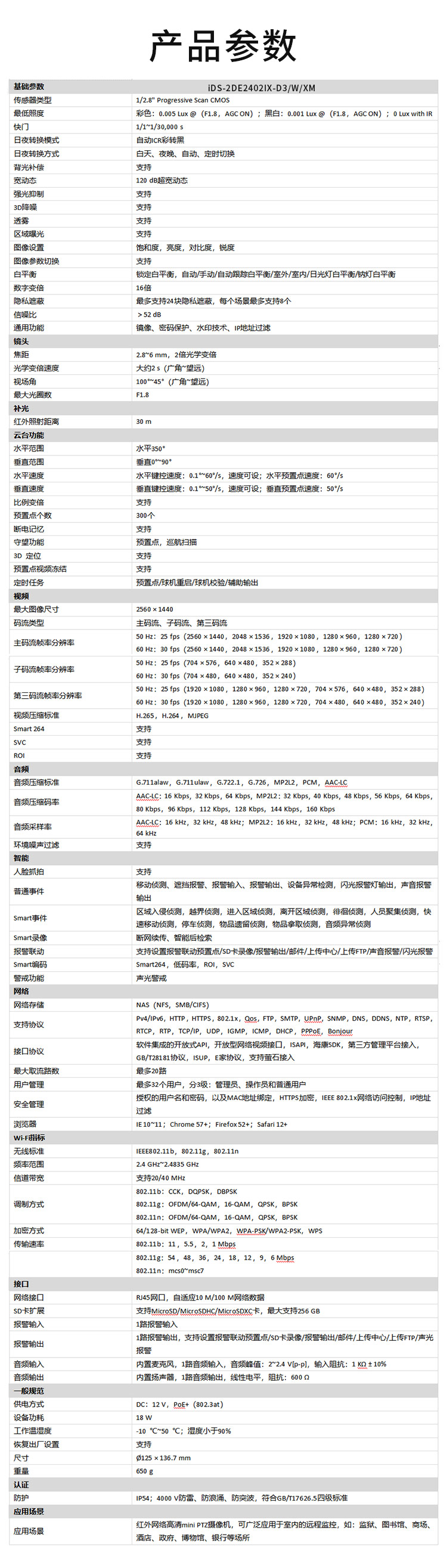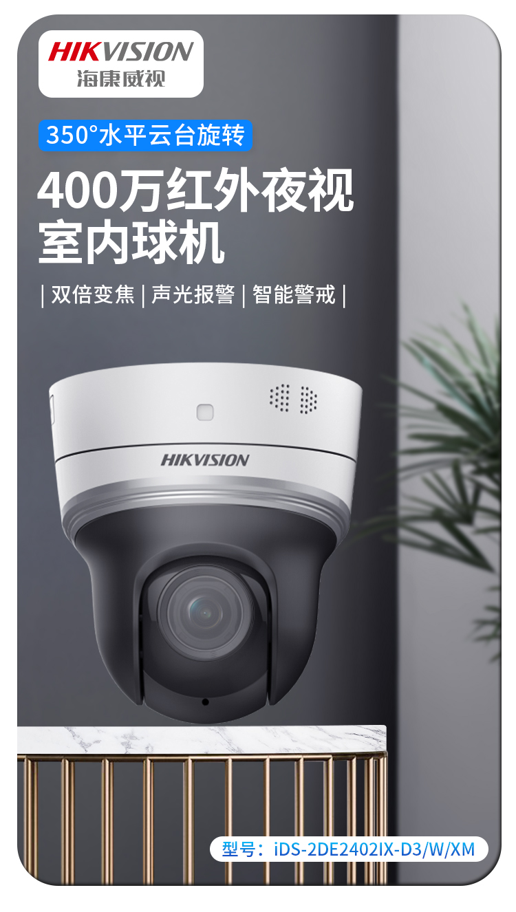 海康威视HIKVISION监控摄像头400万红外夜视室内球机智能警戒声光报警网线供电2DE2402IX-D3/W/XM(单位:个) 白色