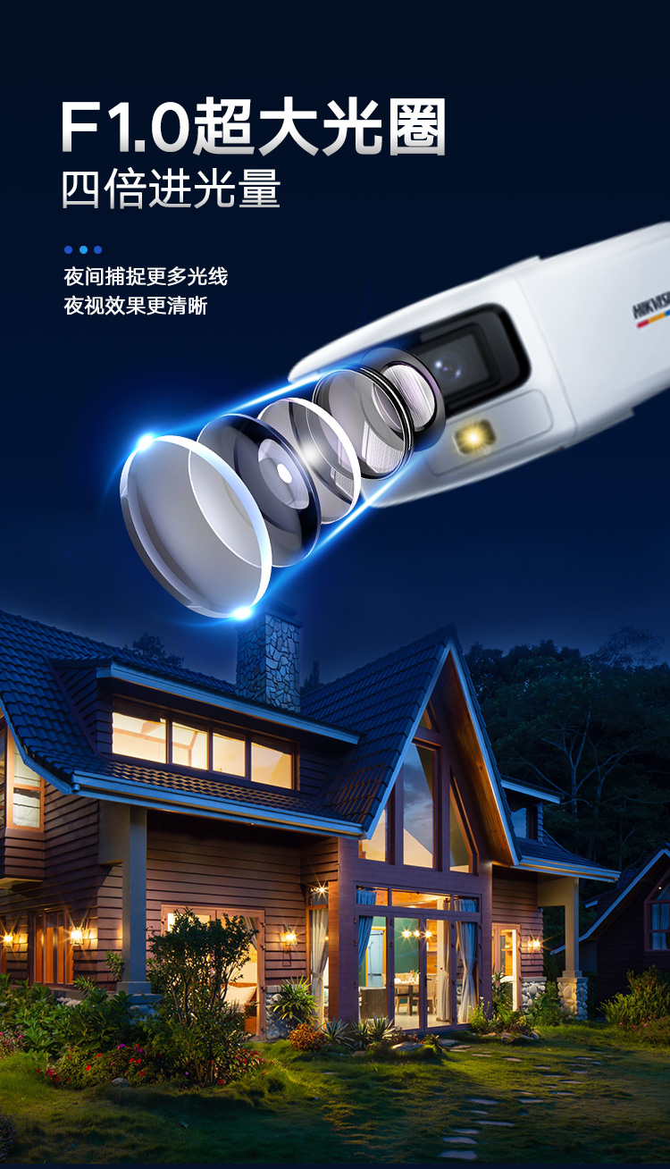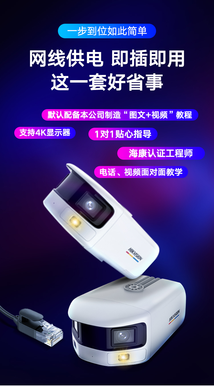 海康威视HIKVISION广角摄像头监控400万全彩全景室内室外安防监控器户外手机远程POE供电3T47FWDP2-LS 白色