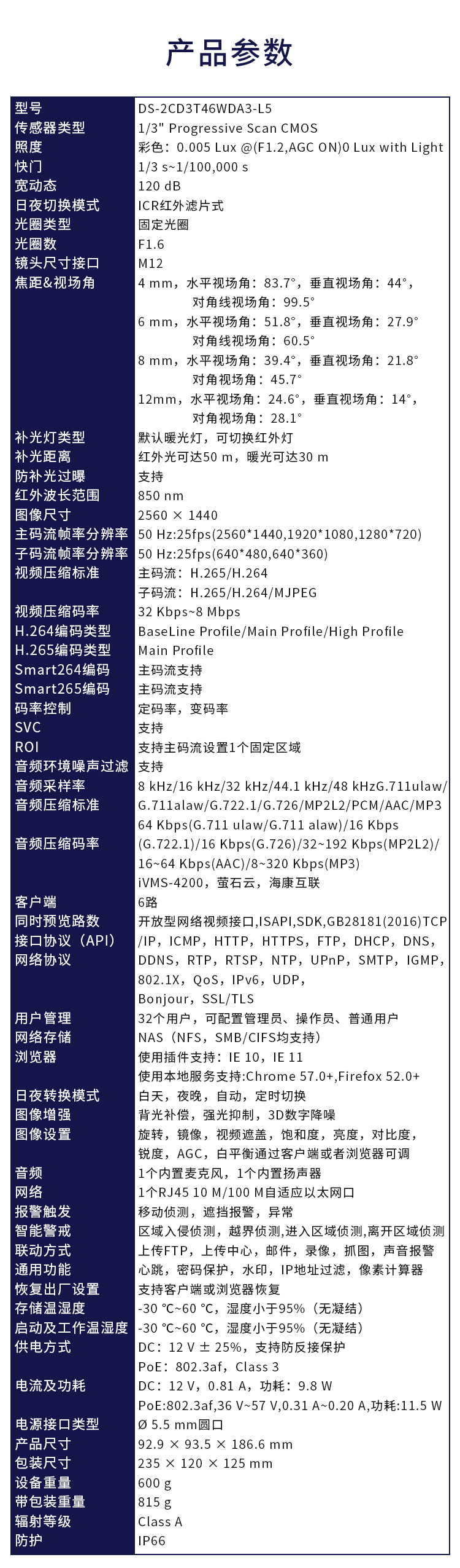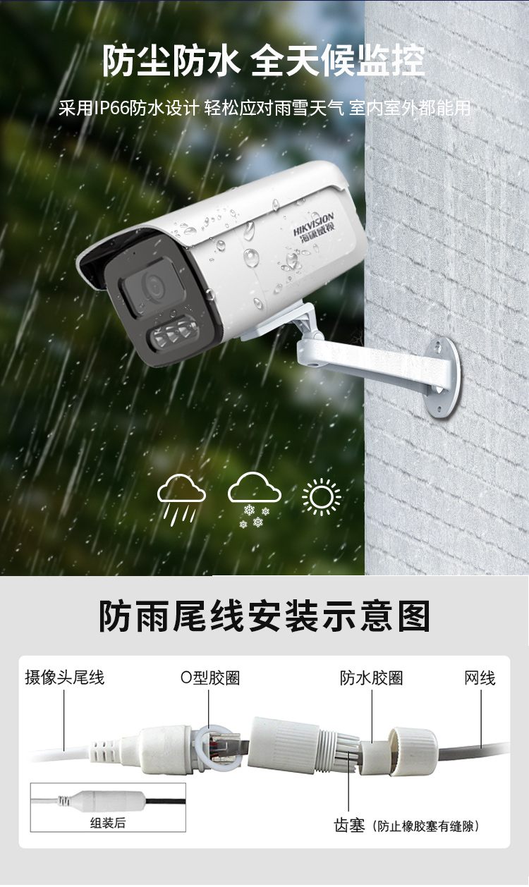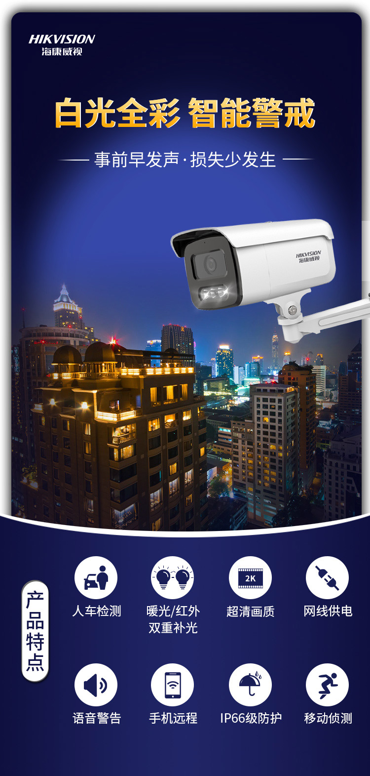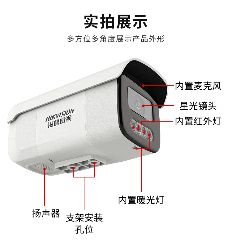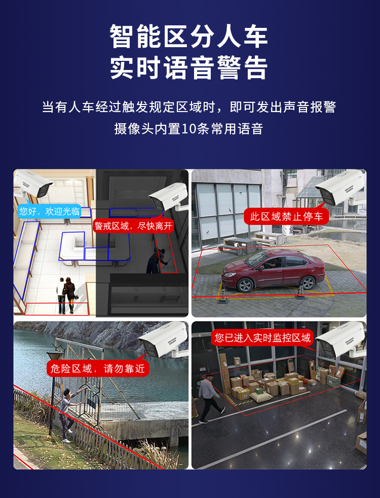 海康威视HIKVISION摄像头监控400万高清全彩夜视语音对讲POE供电室内室外智能警戒人车分类3T46WDA3-L5 4MM 白色