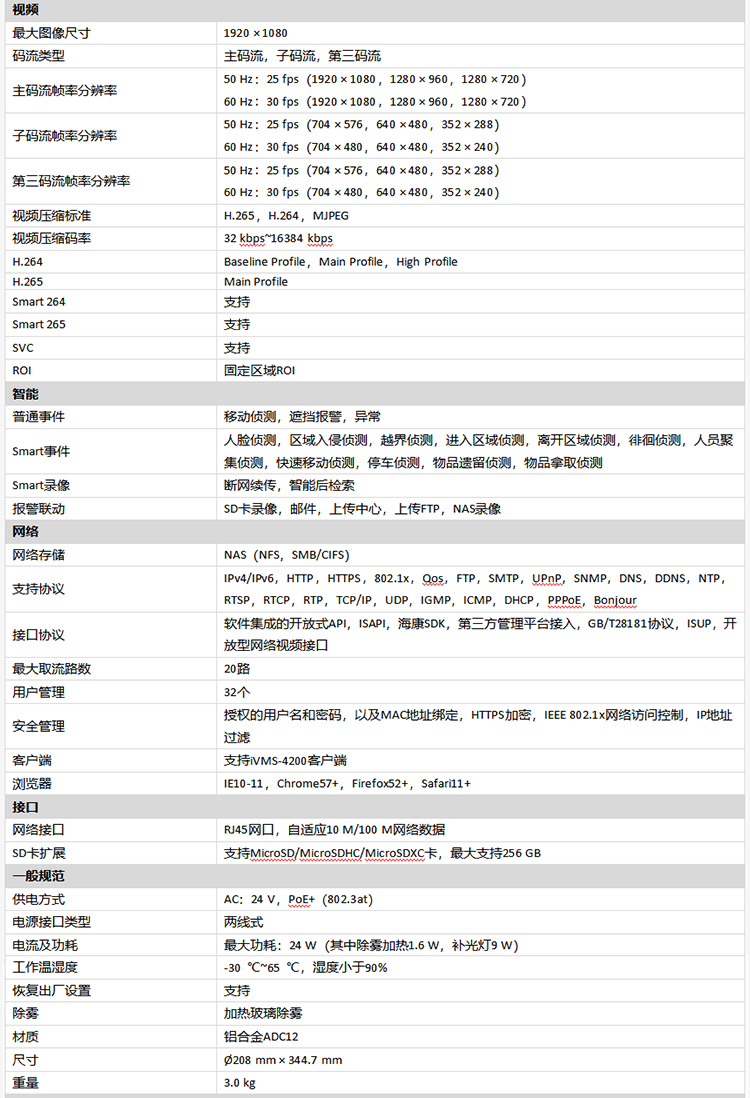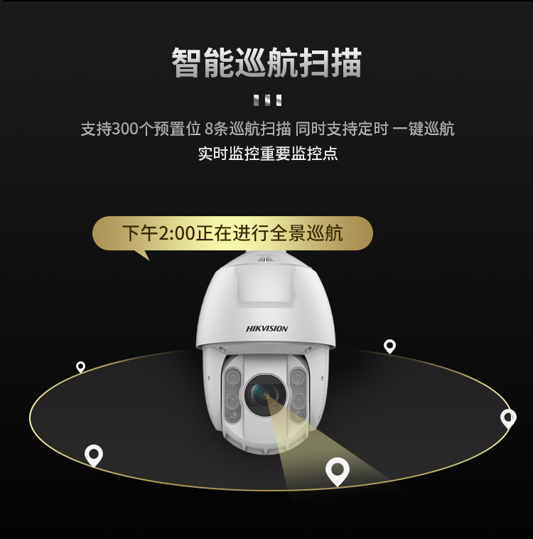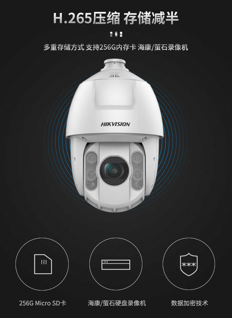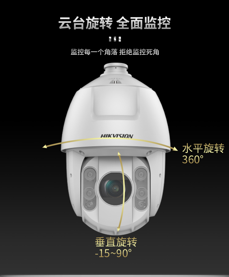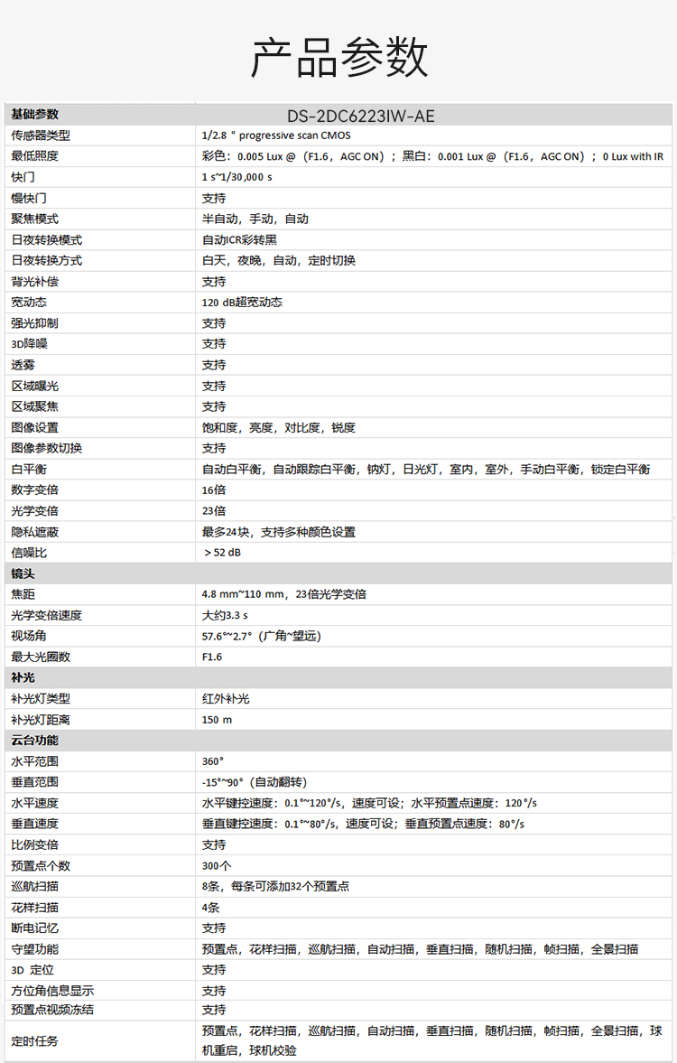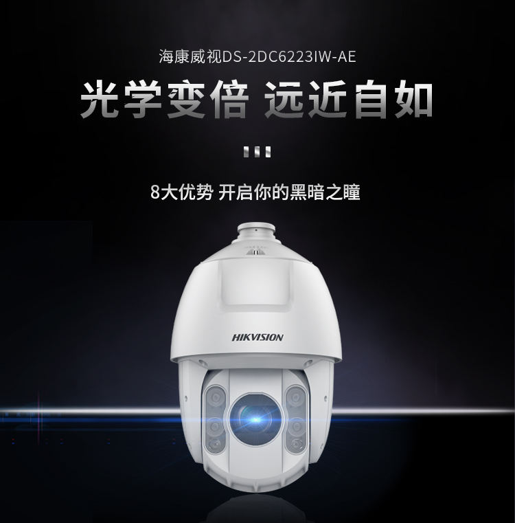 海康威视HIKVISION监控摄像头200万高清智能云台红外夜视室内室外防水防尘网线供电网络球机DS-2DC6223IW-AE 白色