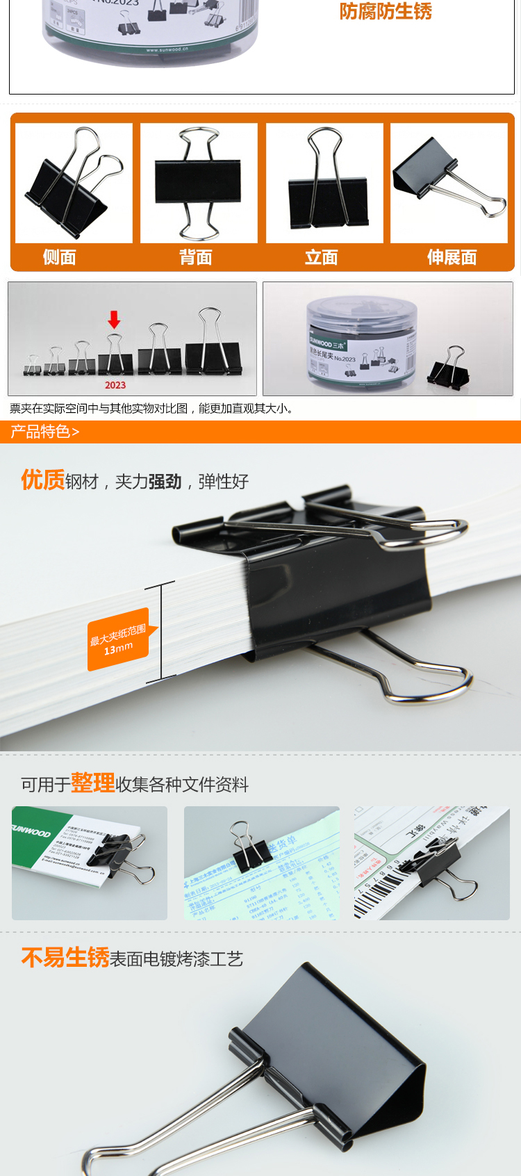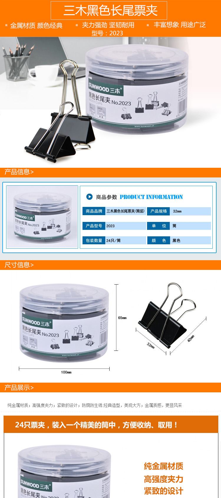 三木 2023 长尾夹 32mm 黑色 24只/筒 计价单位:筒 黑色