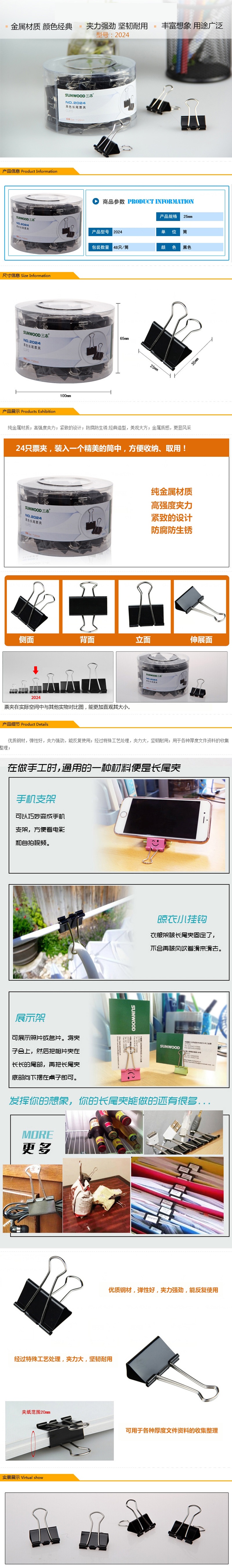 三木 2024 长尾夹 25mm 黑色 48只/筒 计价单位:筒 黑色