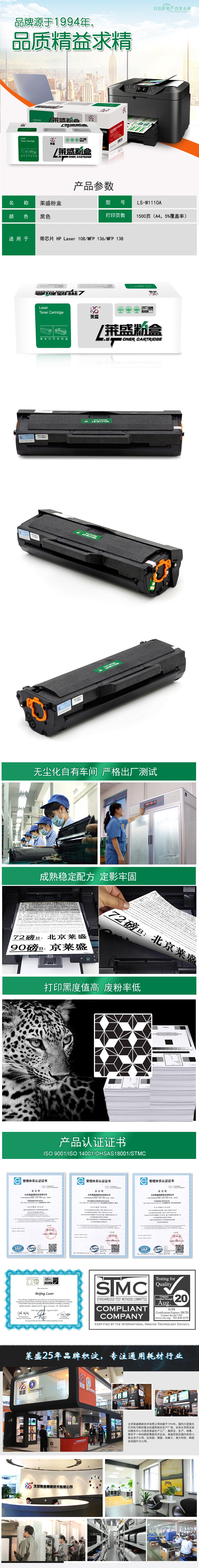 莱盛(laser) 莱盛LS-W1110A 打印量1500页 适用于HP Laser 108/MFP 136/MFP 138 硒鼓/粉盒 (计价单位:只) 黑色 硒鼓 (计价单位:只) 黑