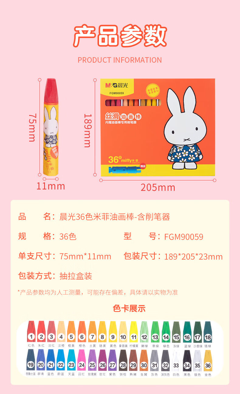 晨光(M&G) 丝滑油画棒 FGM90059 36色 混色(单位:盒)
