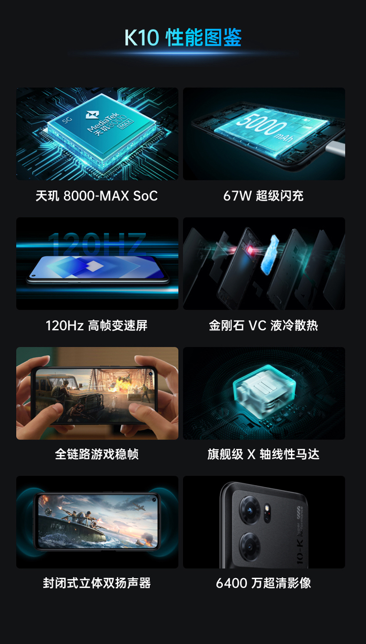 OPPO K10 12GB+256GB 5G手机 冰魄蓝