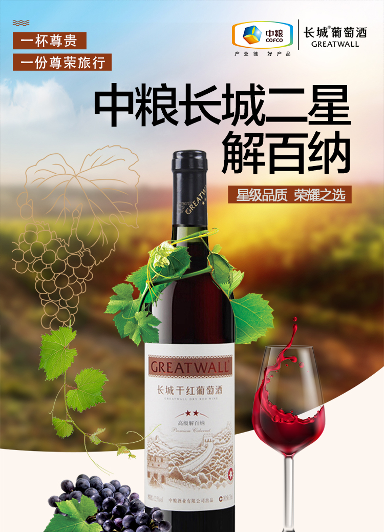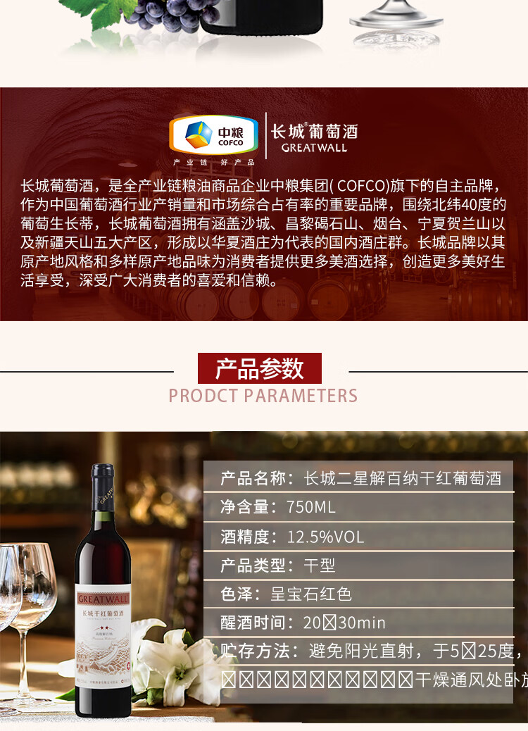 长城 二星蛇龙珠干红葡萄酒 750ml*6瓶 整箱 红色