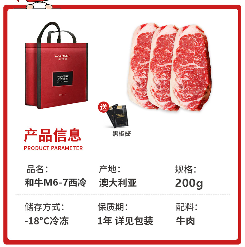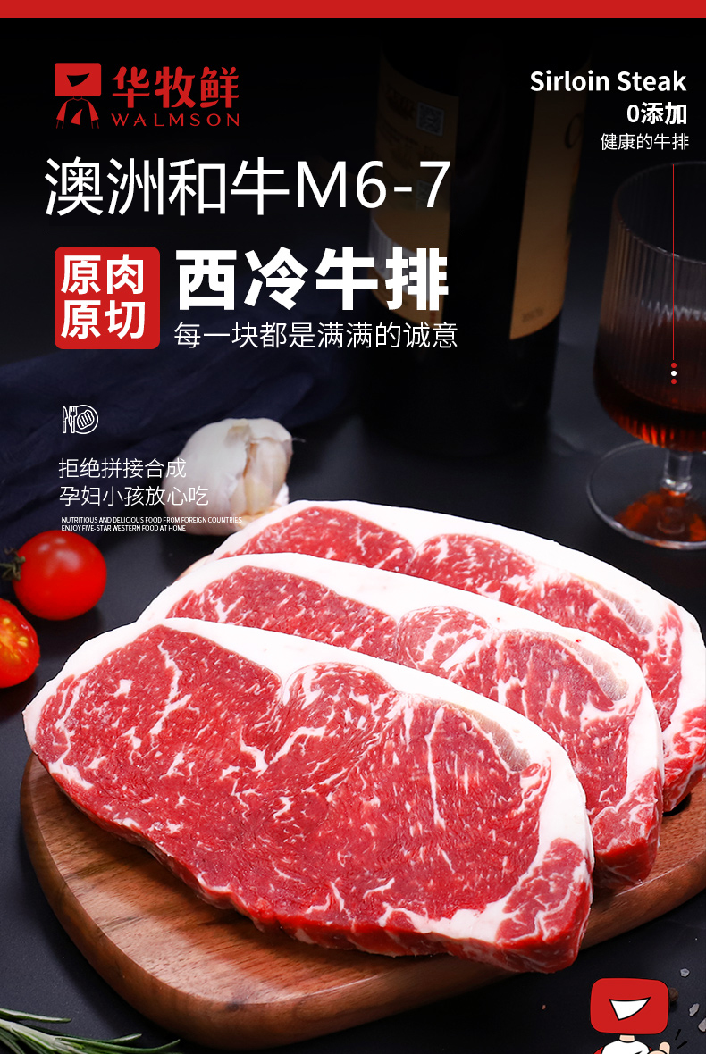 华牧鲜 M6-M7级和牛西冷 2片装/400g 黑色