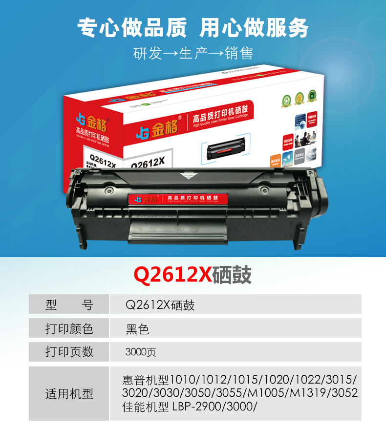 金格Q2612X大容量硒鼓1支打印量3000页适用惠普HP1010 1012 1020plus 黑色