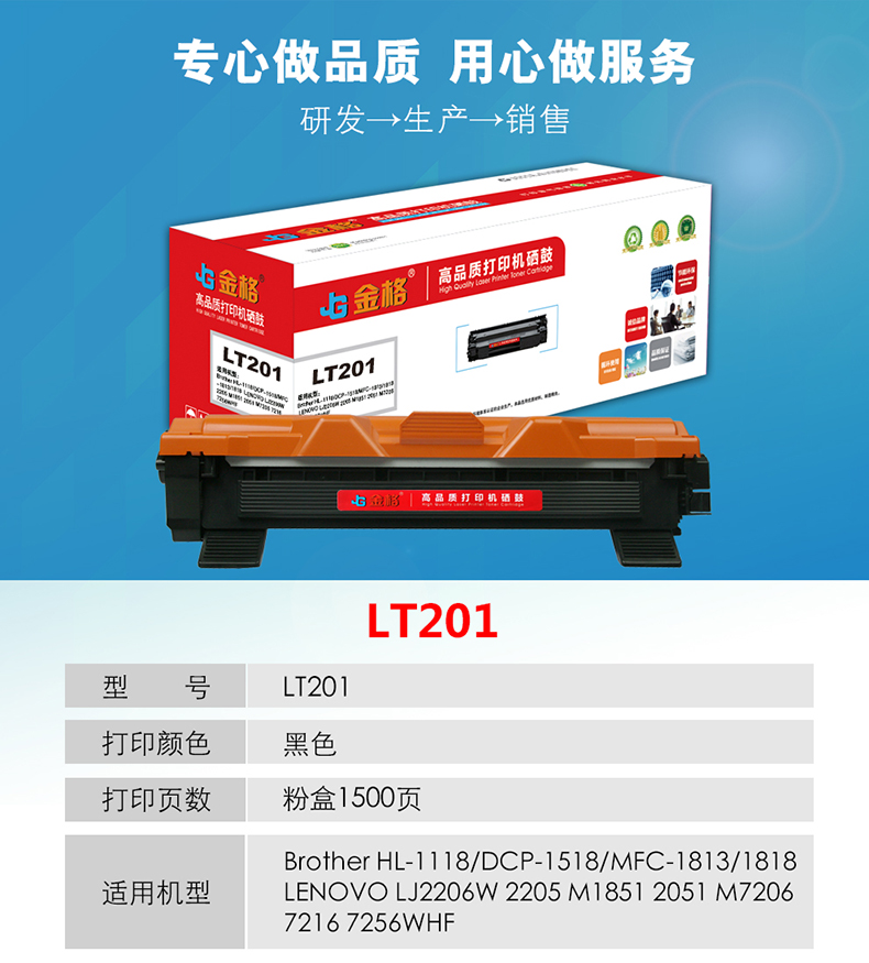 金格LT201粉盒1支打印量1500页适用联想M7206W M7255F 7216NWA 黑色