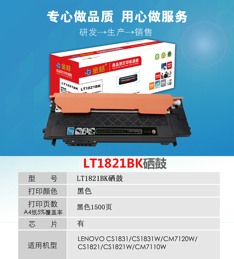 金格LT1821BK粉盒1支打印量1500页适用联想CS1831 1831W/CM7120W 黑色