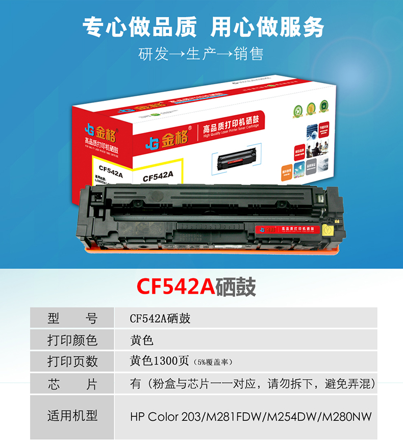 金格CF542A硒鼓1支打印量1300页适用惠普M281fdw M254dw港版M280nw 黄色