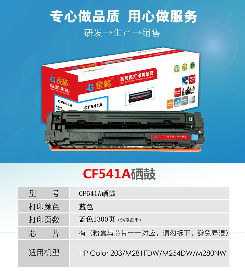 金格CF541A硒鼓1支打印量1300页适用惠普M281fdw M254dw港版M280nw 蓝色