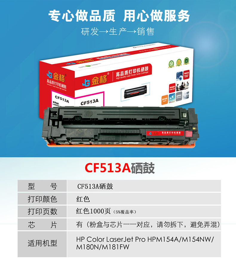 金格CF513A硒鼓1支打印量1000页适用惠普HP M154nw M154a M180n M181 红色