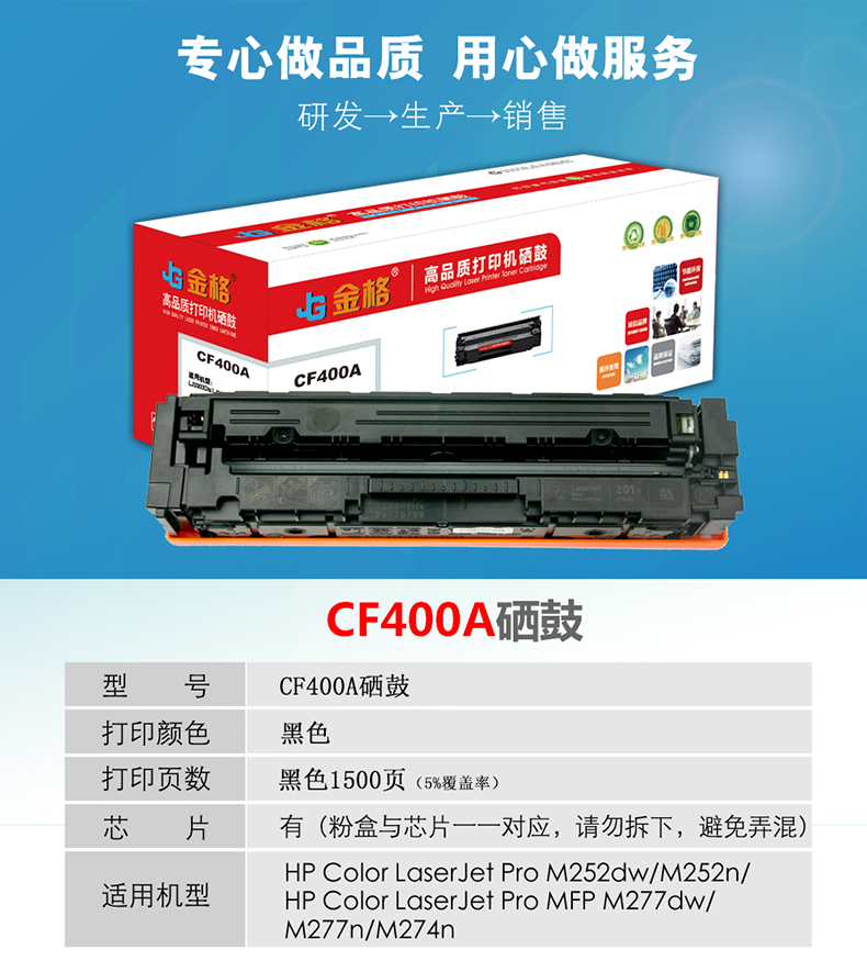 金格CF400A硒鼓1支打印量1500页适用惠普HP 201A 252 M252N M252DN 黑色