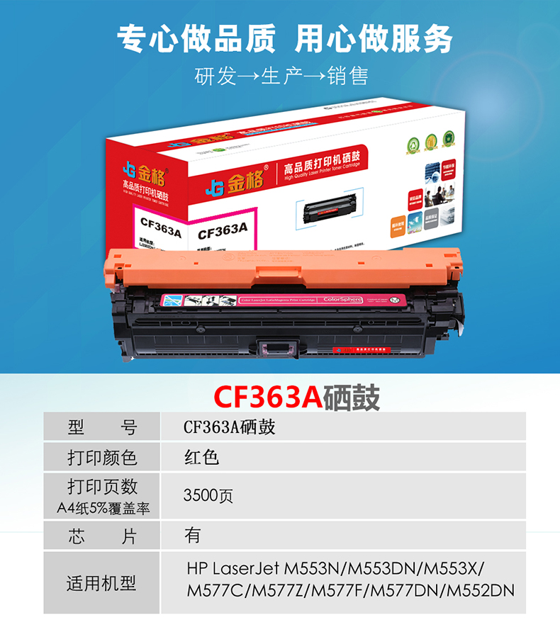 金格CF363A硒鼓1支打印量3500页适用惠普M553N M553DN M552dn M553X 红色