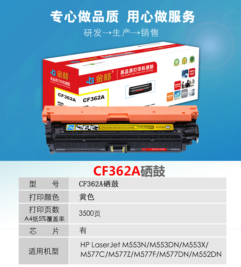 金格CF362A硒鼓1支打印量3500页适用惠普M553N M553DN M552dn M553X 黄色