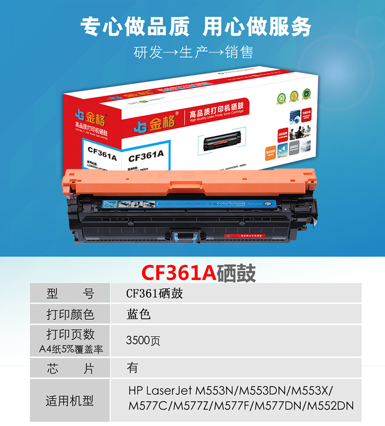 金格CF361A硒鼓1支打印量3500页适用惠普M553N M553DN M552dn M553X 蓝色