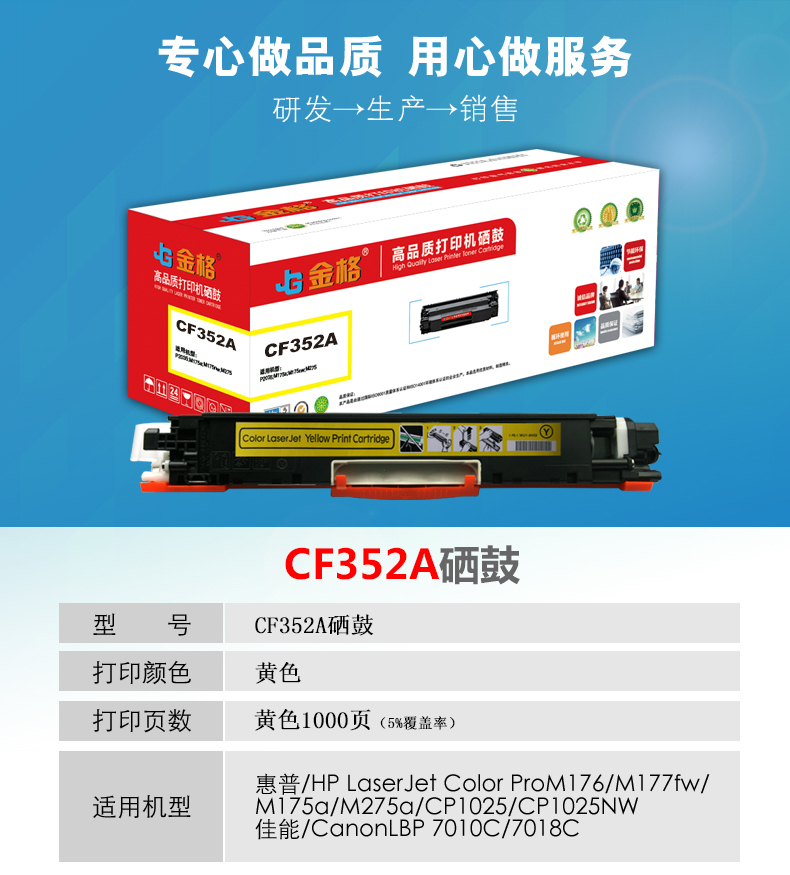 金格CF352A硒鼓1支打印量1000页适用HP M176n 177fw CP1025 M175a 黄色