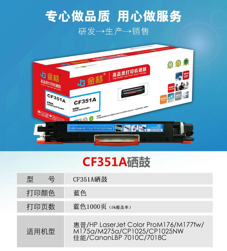 金格CF351A硒鼓1支打印量1000页适用HP M176n 177fw CP1025 M175a 蓝色