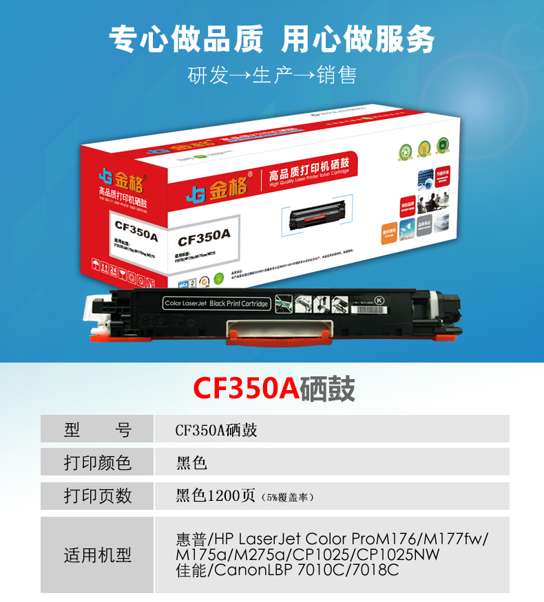 金格CF350A硒鼓1支打印量1200页适用HP M176n 177fw CP1025 M175a 黑色