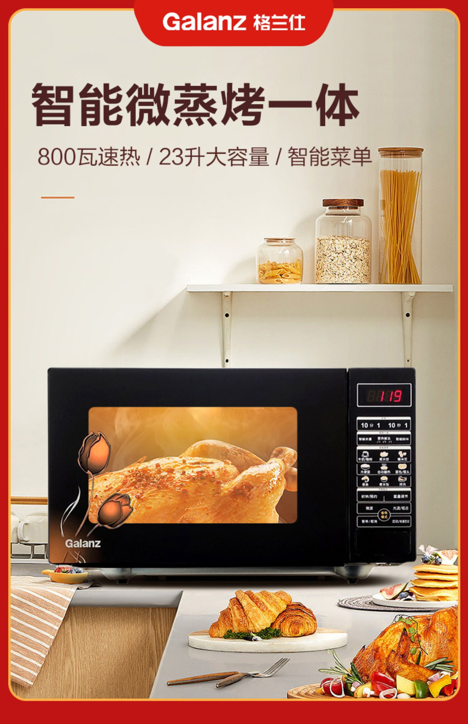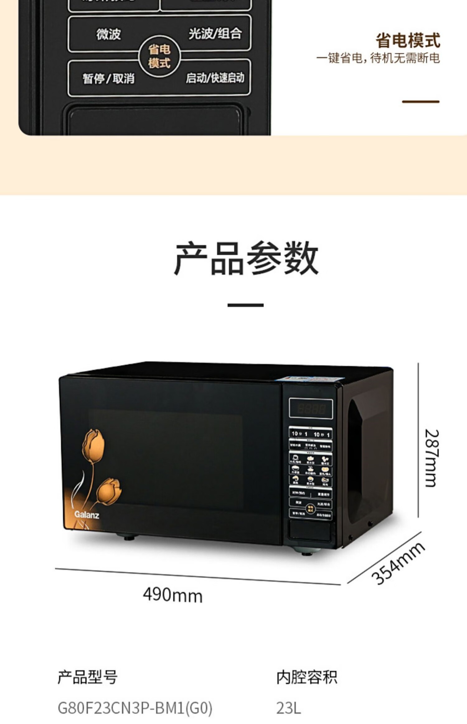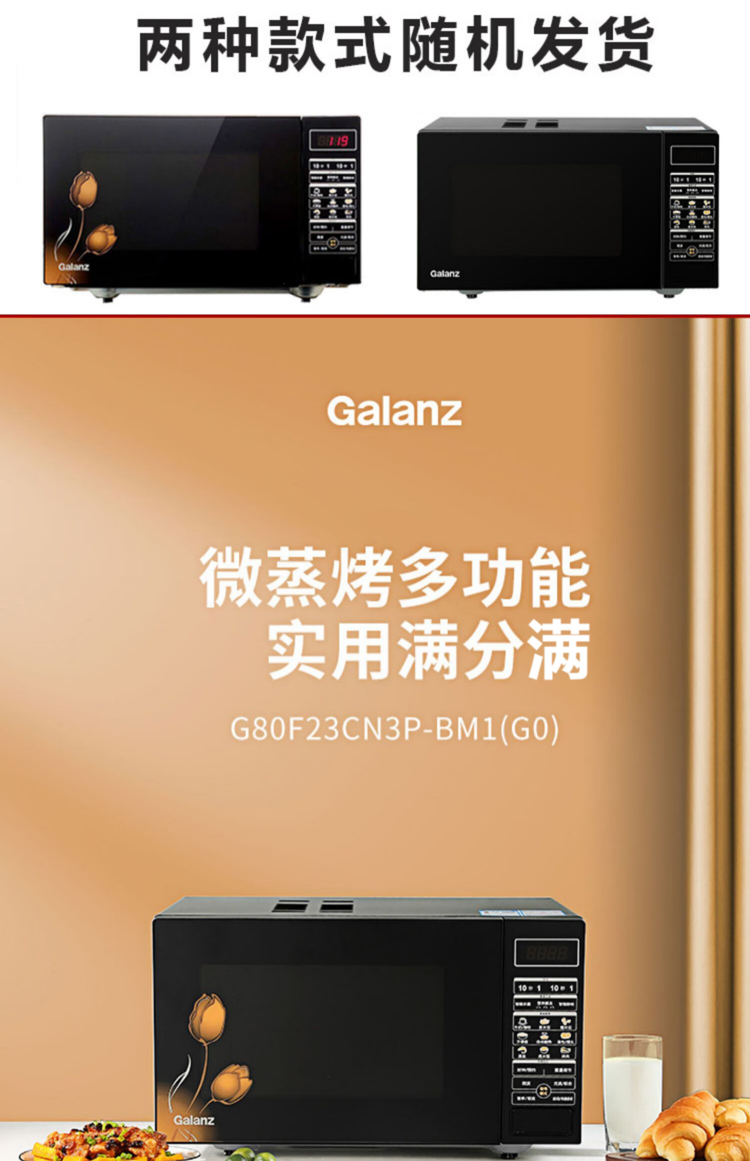 格兰仕(Galanz)23升家用大容量 微波光波炉 营养解冻G80F23CN3P-BM1(G0)台 黑色