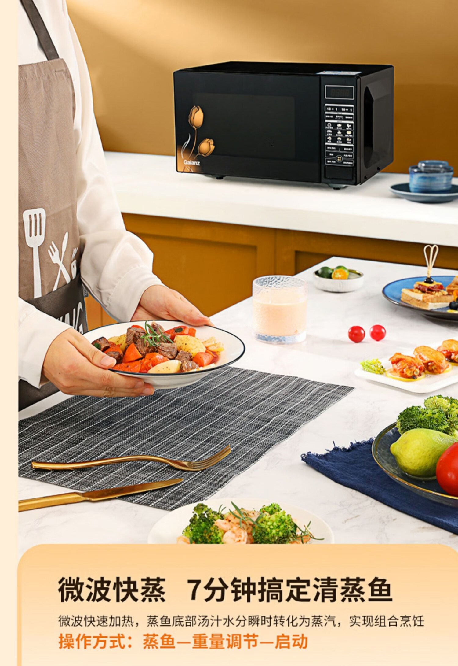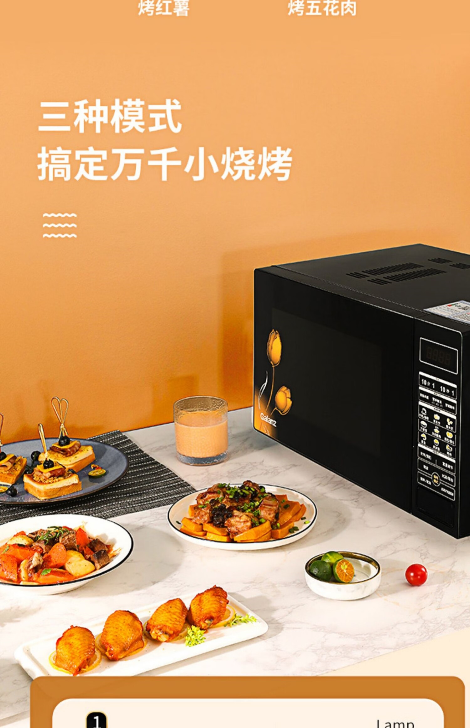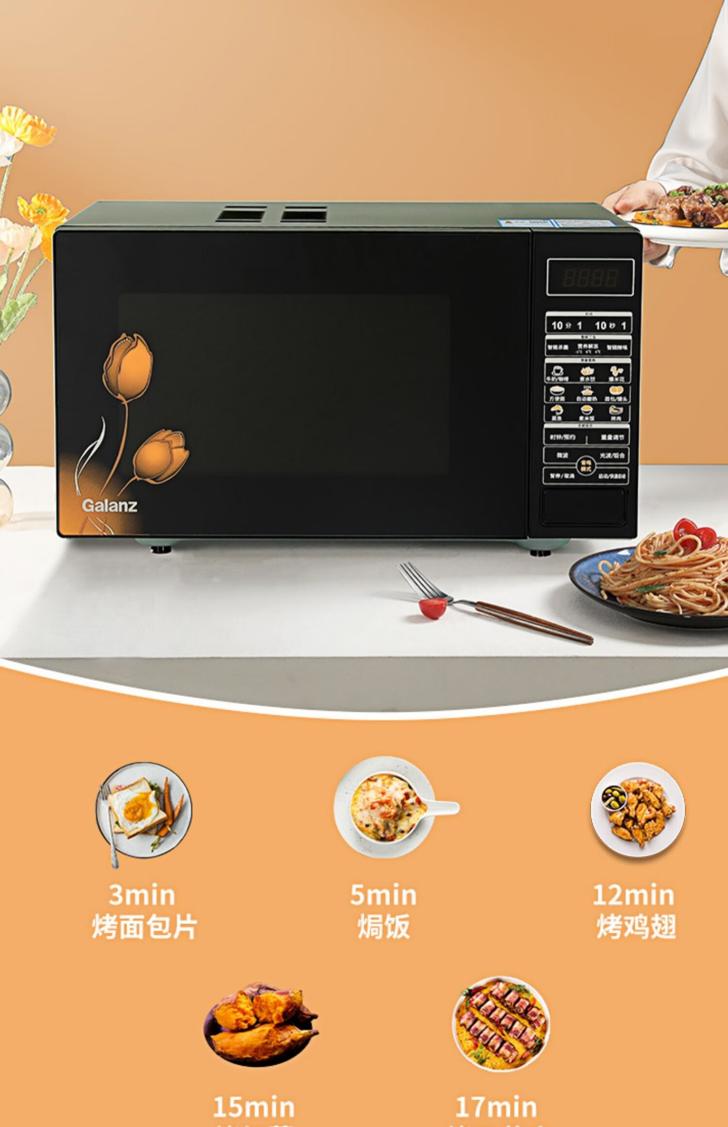 格兰仕(Galanz)23升家用大容量 微波光波炉 营养解冻G80F23CN3P-BM1(G0)台 黑色