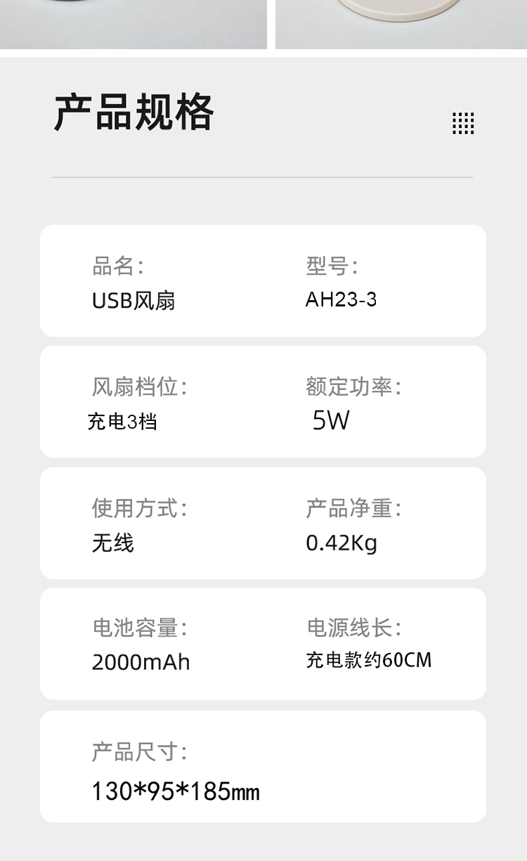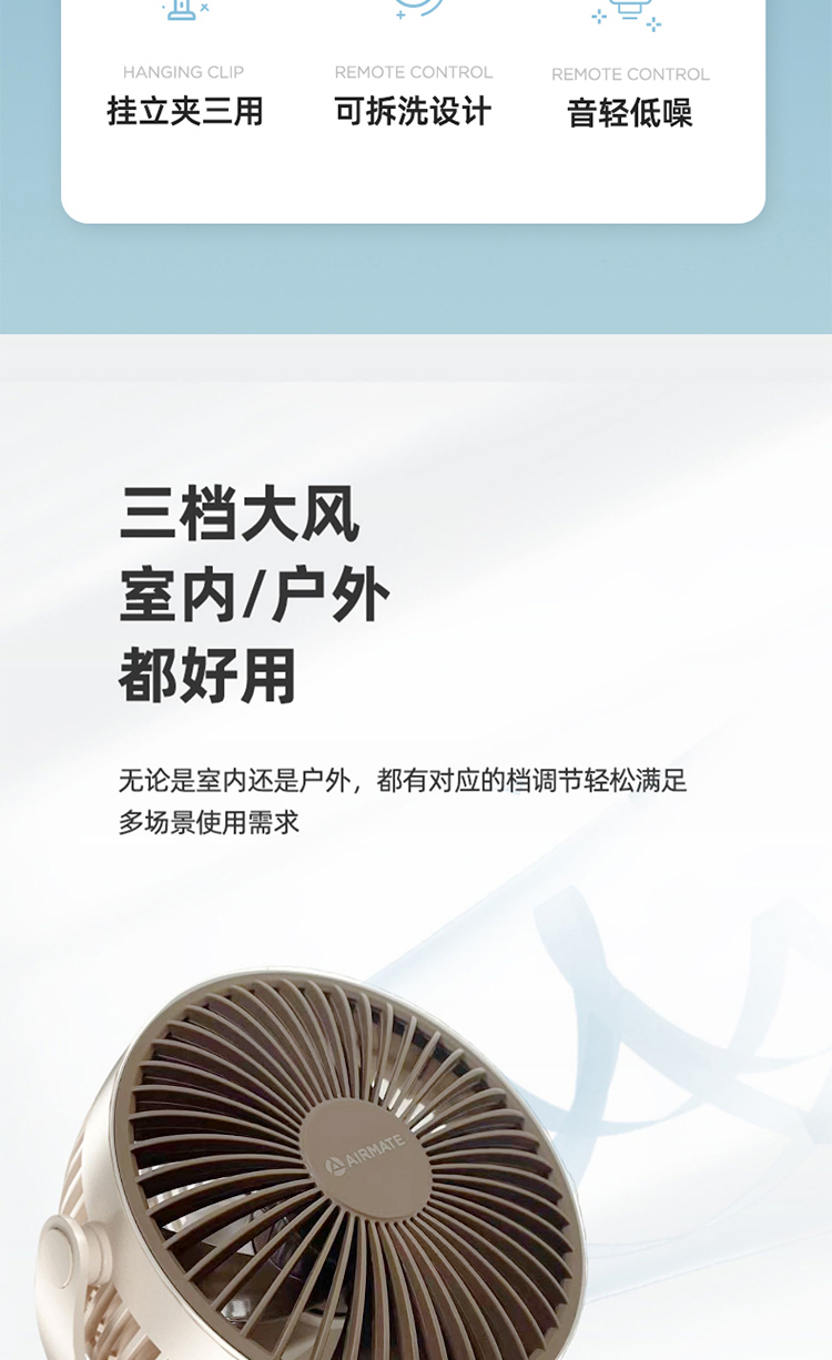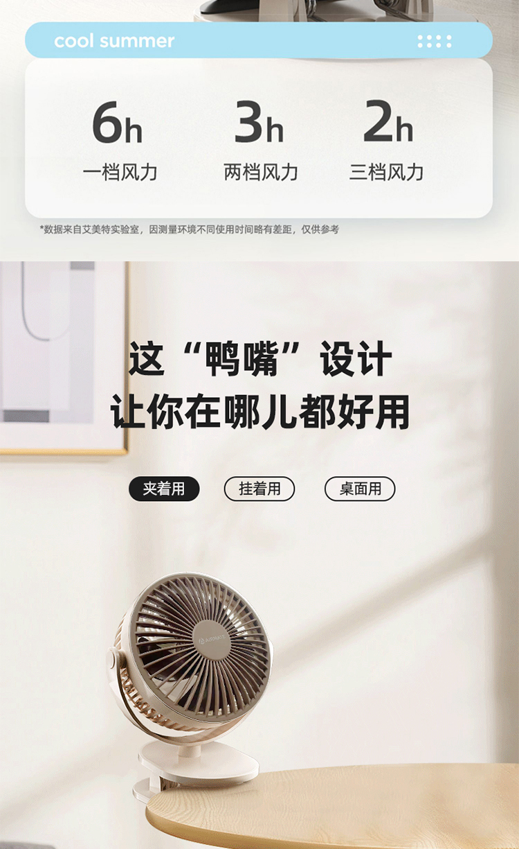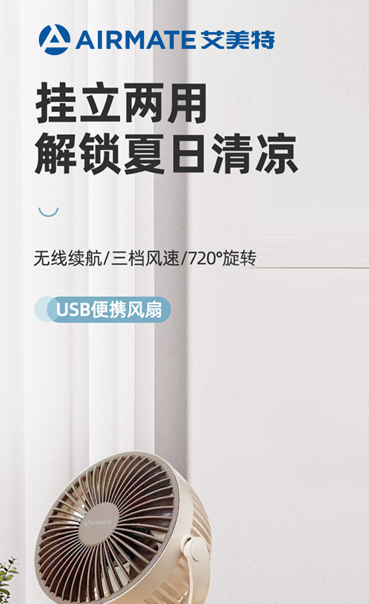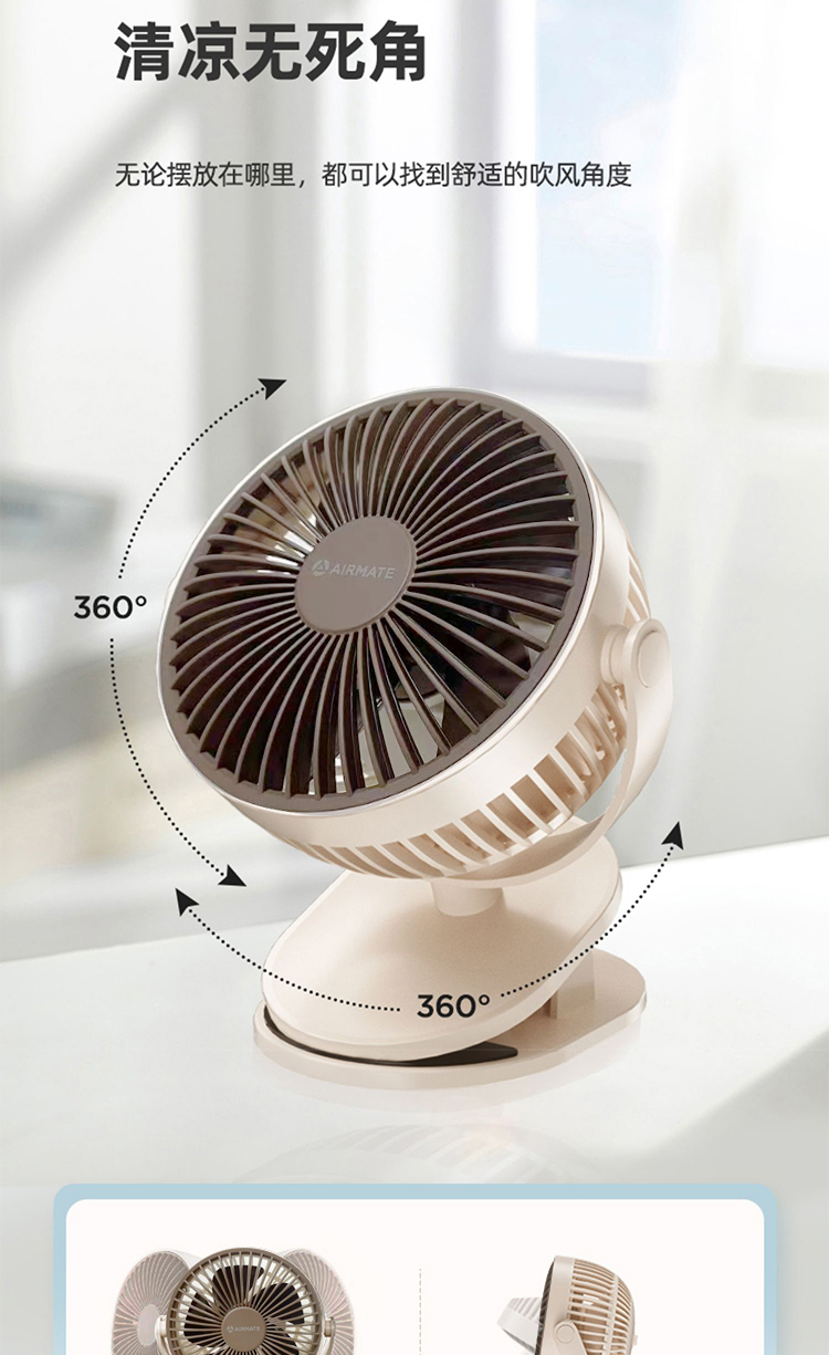 艾美特(AIRMATE) AH23-3 5w USB夹扇 白色(单位:台)