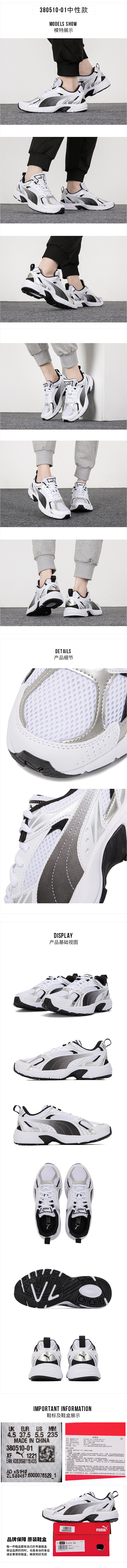 彪马(PUMA)男鞋女鞋 新品舒适透气网面男运动鞋缓震慢跑步鞋旅游低帮休闲鞋 380510-01 白-石灰色-黑色 40.5