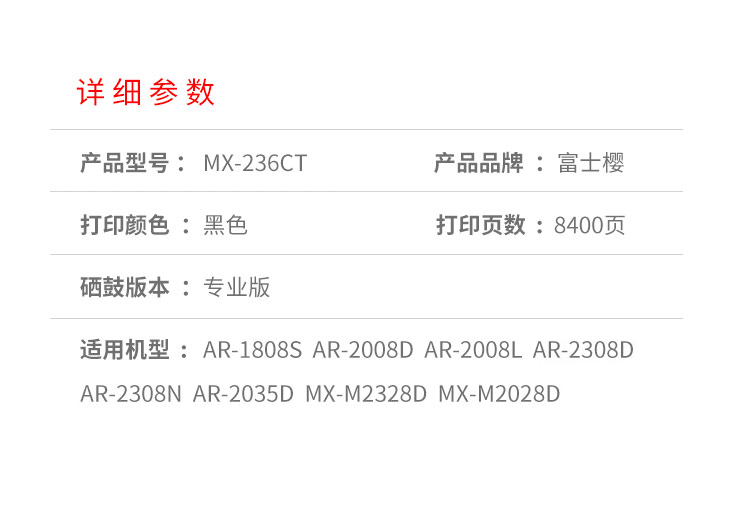 富士樱 MX-236CT 黑色墨粉盒 适用夏普SHARP MX-M2328D M2028D 黑色