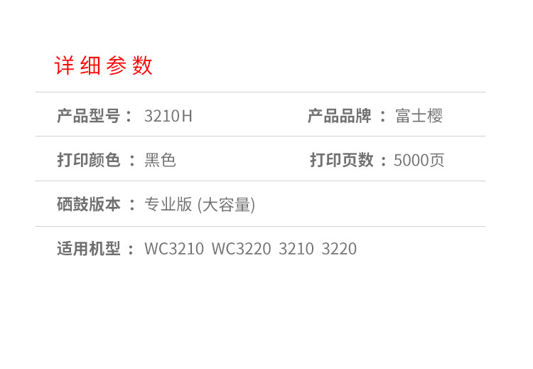 富士樱 3210H 高容量硒鼓 黑色适用施乐 WC3210 WC3220 专业版106R01500 黑色