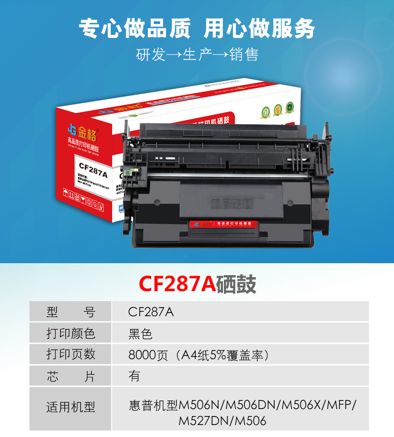 金格CF287A硒鼓1支打印量8000页适用惠普M506dn M506n M506X M501 黑色
