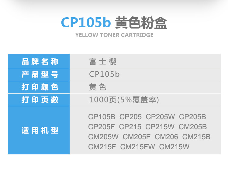 富士樱 CP105b 黄色墨粉盒 适用施乐CP205 205w 205b 205f 215 黄色