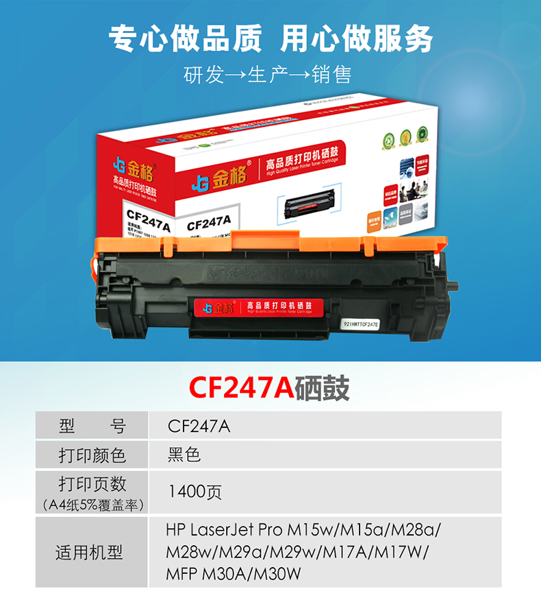 金格CF247A硒鼓1支打印量1400页适用HP M17a M17w M30a M30w 黑色