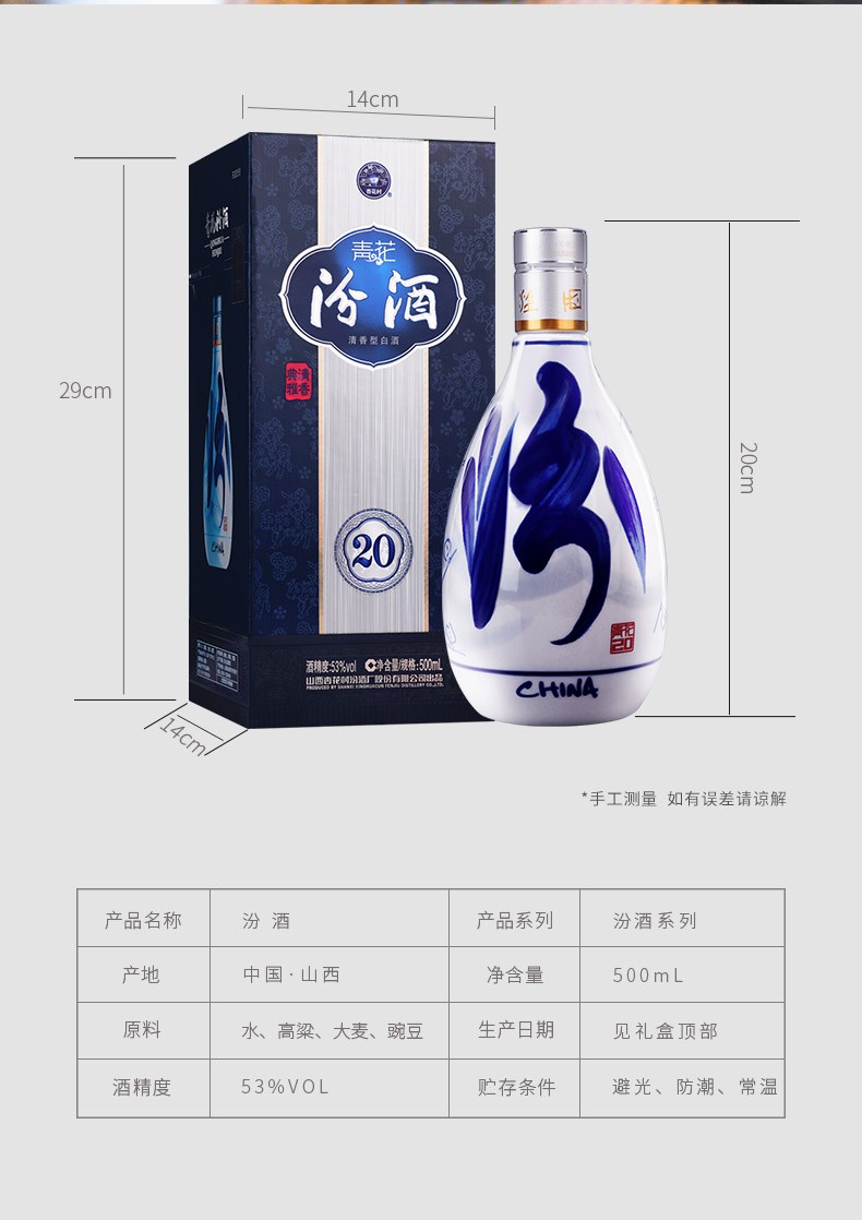 汾酒青花20 53度 500mL*2 双瓶装 清香型白酒 双瓶装