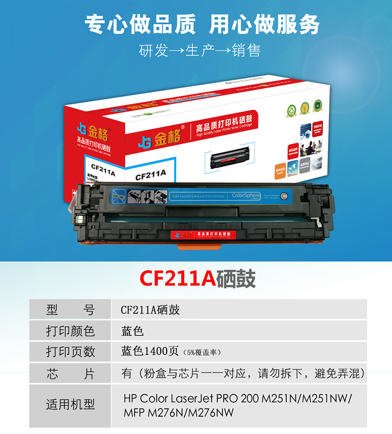 金格CF211A硒鼓1支打印量1400页适用HP LaserJet M251n M276n M276 蓝色