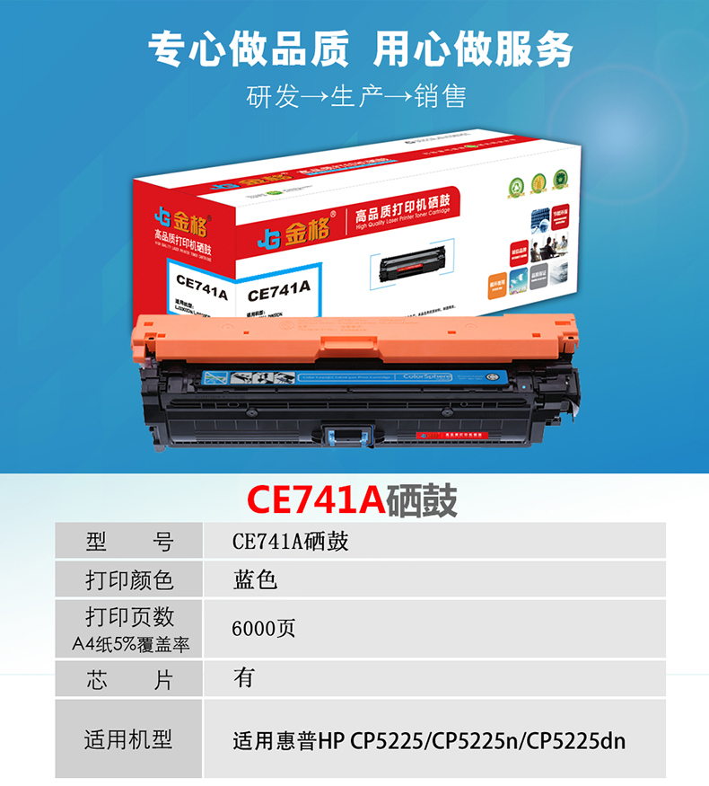 金格CE741A硒鼓1支打印量6000页适用惠普 CP5225/CP5225n/CP5225dn 蓝色