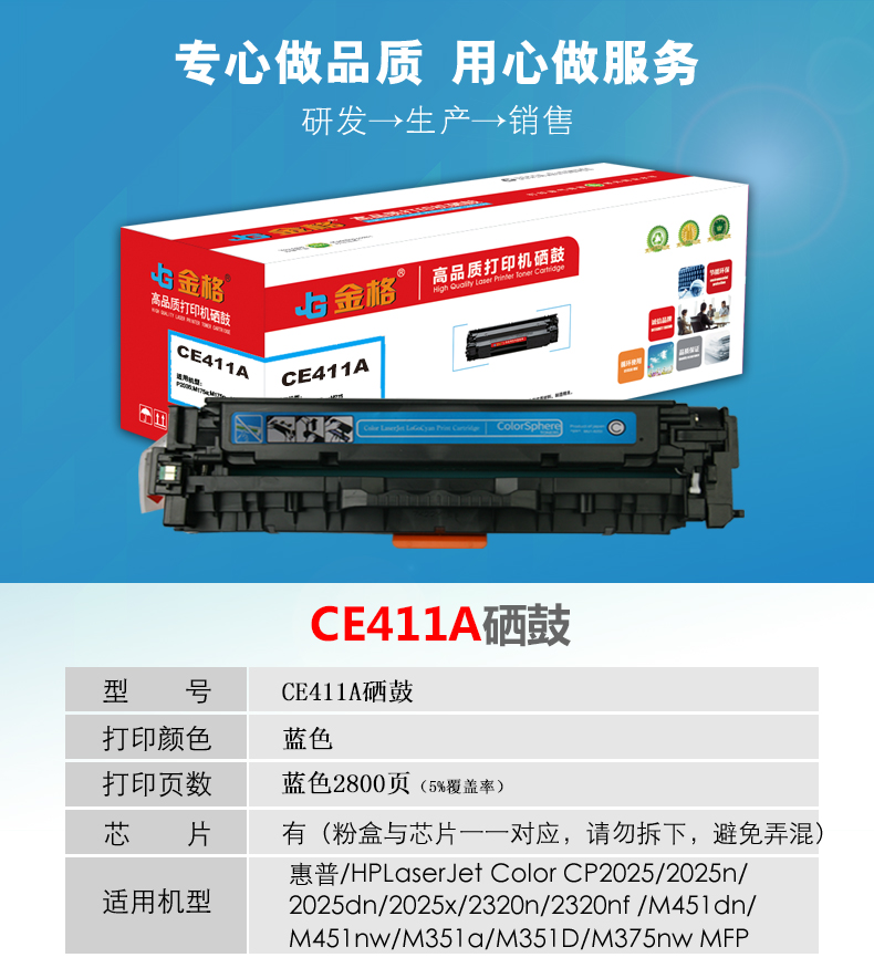 金格CE411A硒鼓1支打印量2800页适用惠普M351a/M451dn/M451nw/M375nw 蓝色