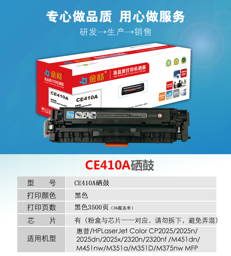 金格CE410A硒鼓1支打印量3500页适用惠普M351a/M451dn/M451nw/M375nw 黑色
