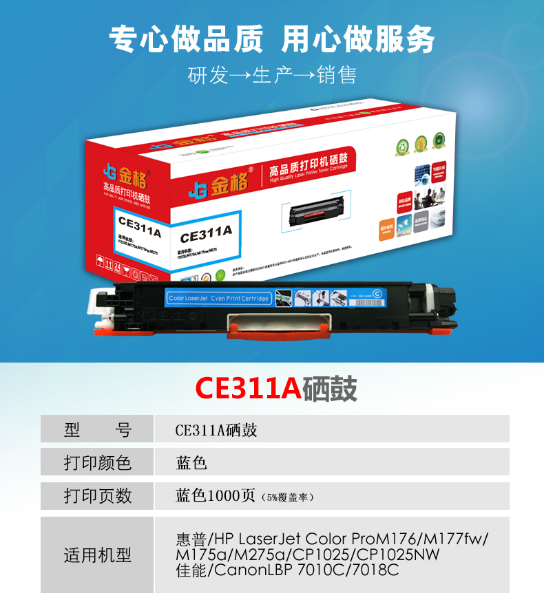 金格CE311A硒鼓1支打印量1000页适用于惠普HP CP1025 M175a M175nw 蓝色