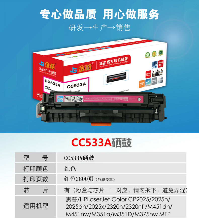金格CC533A硒鼓1支打印量2800页适用惠普HP CP2020 2025X 2025N 2025 红色
