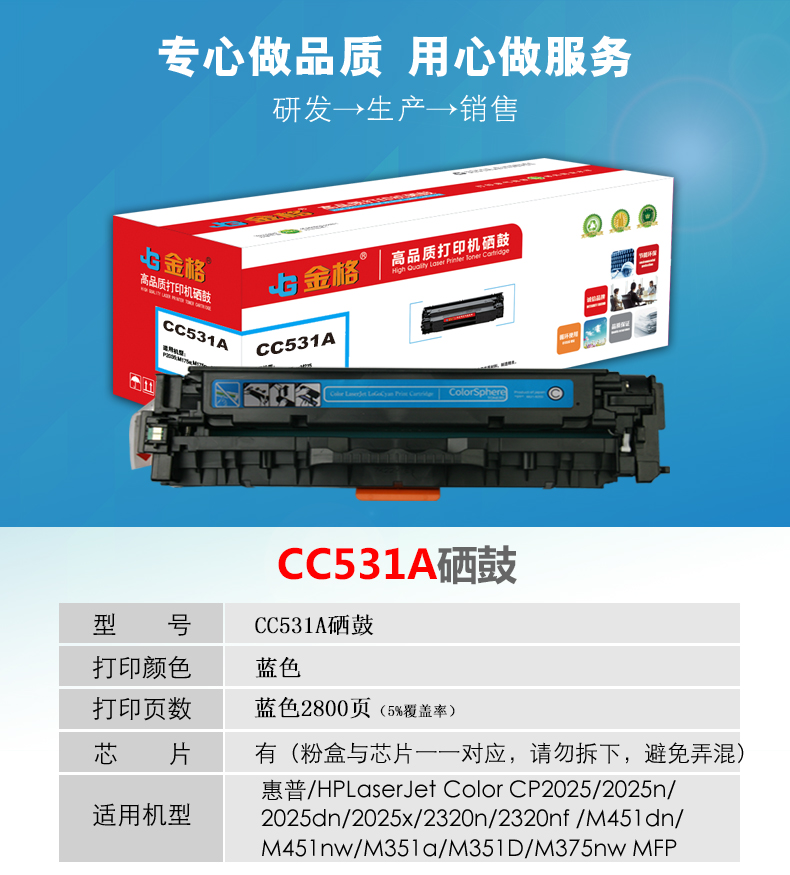 金格CC531A硒鼓1支打印量2800页适用惠普HP CP2020 2025X 2025N 2025 蓝色