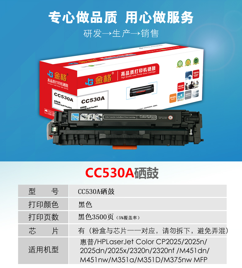 金格CC530A硒鼓1支打印量3500页适用惠普HP CP2020 2025X 2025N 2025 黑色