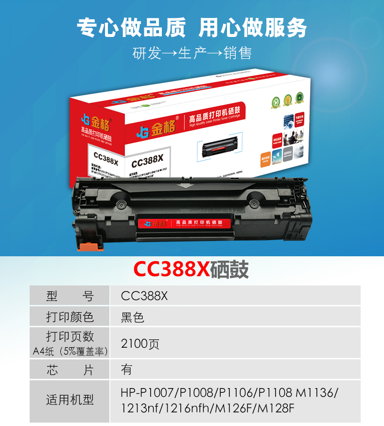 金格CC388X大容量硒鼓1支打印量2100页适用惠普 P1007/P1008/P1106/P110 黑色