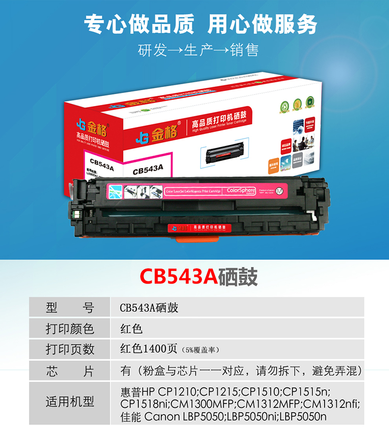 金格CB543A硒鼓1支打印量1400页适用于惠普CP1215 1510 1515n 1518ni 红色