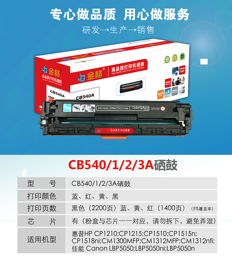 金格CB540A硒鼓1支打印量2200页适用惠普CP1215 1510 1515n 1518ni 黑色