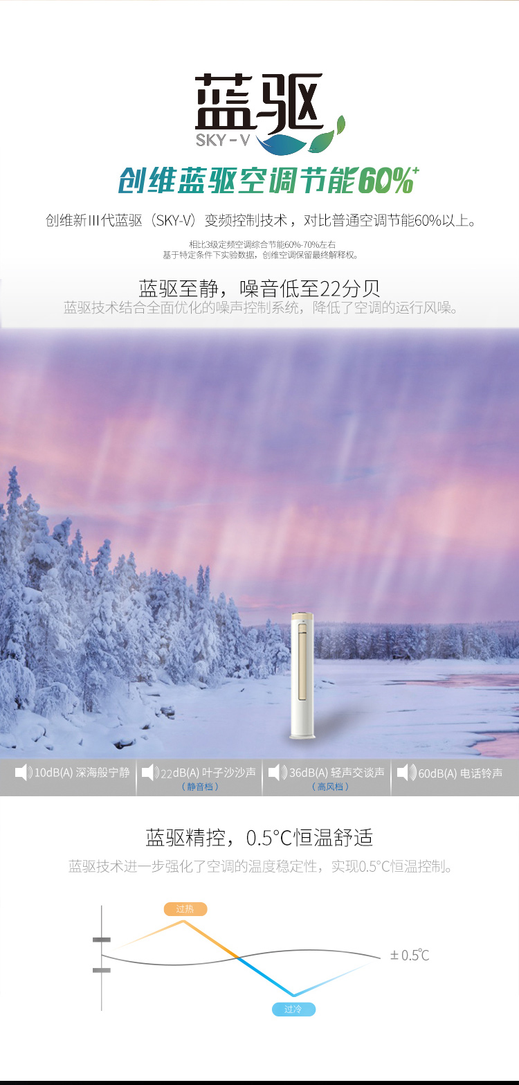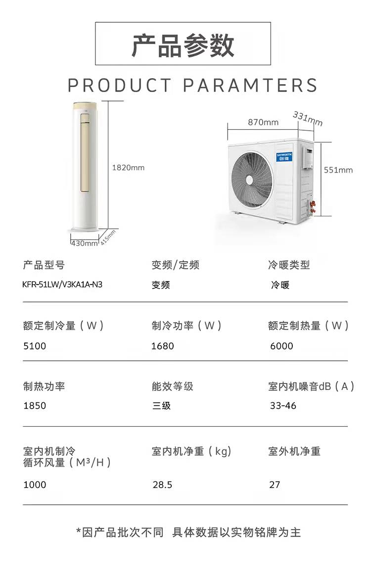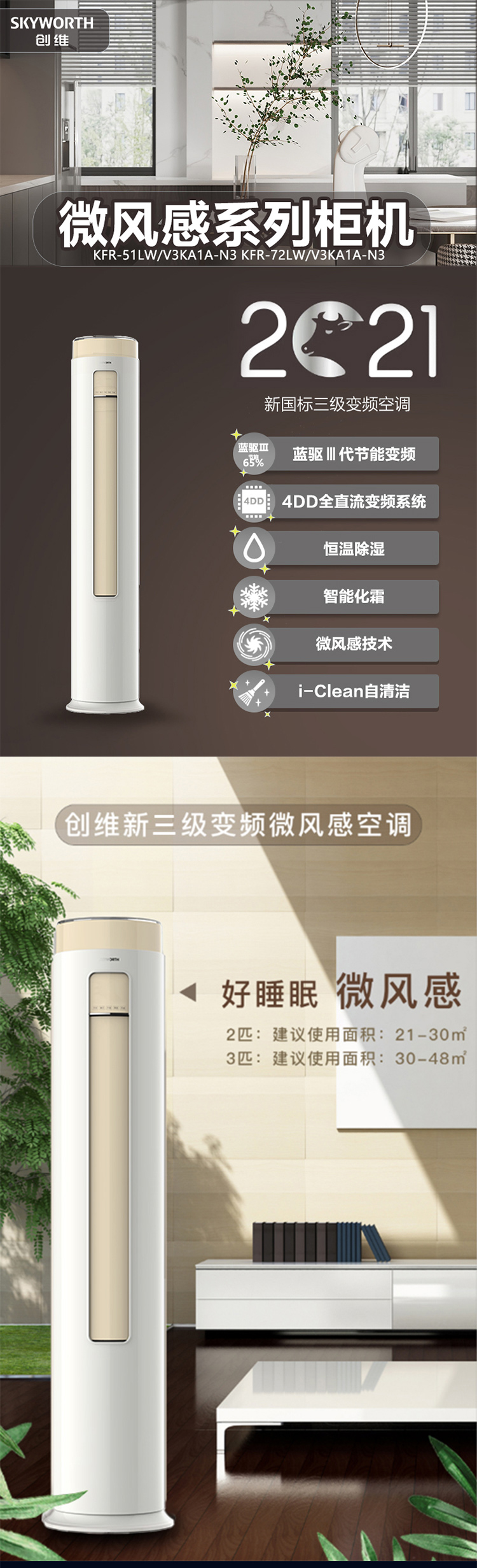 创维微风感2匹冷暖变频空调三级节能抗霉自清洁柜机蓝驱技术KFR-51LW/V3KA1A-N3单位:台 白色