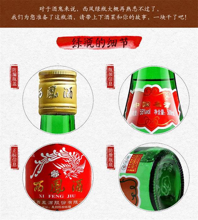陕西西凤酒 高脖绿瓶绿脖西凤 凤香型酒白酒 盒装白酒 55度 500ml*6瓶 整箱装